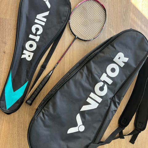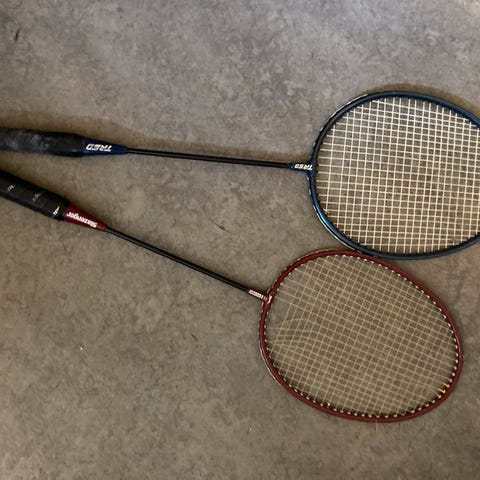 Der er to ketchere, som er blevet brugt til træning på højt niveau + turneringer, som blev købt til en pris for ca. 800 kr pr stk. (De to til højre) To andre ketchere, som er mere "haveketchere", men stadig fine. Den ene er en børneketcher (Altså kortere end en normal ketcher)