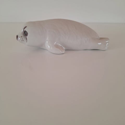 Bing & Grøndahl sæl figur i keramik med sort glasur. Produktet har modelnummer 1733 og er mærket med B&G Denmark. Figuren viser en sæl i siddende position med detaljeret form og glat overflade.