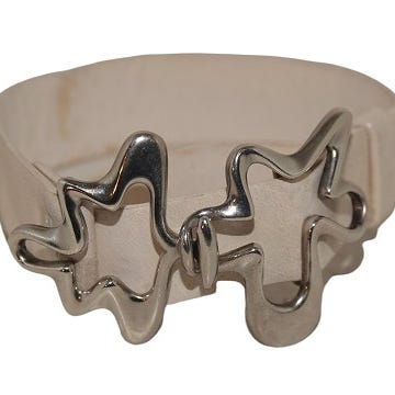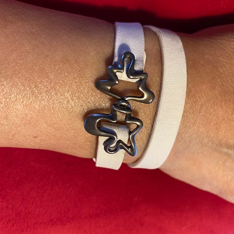 Af Henning Koppel, rød læderrem længde 34 cm. Det er beregnet til at gå to omgange rundt om håndleddet. Bredde 1 cm. I orginal æske. Helt nyt, ubrugt