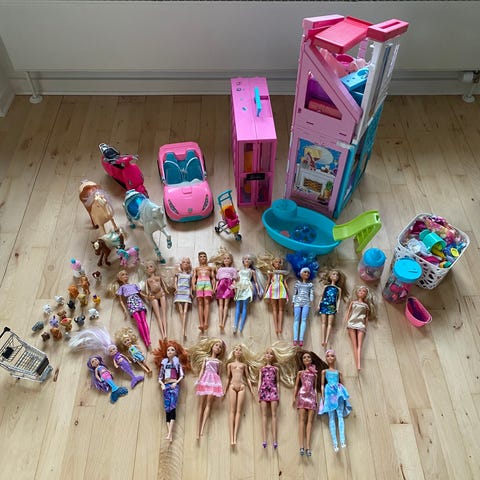 Barbie dukker møbler heste tøj hus klædeskab og tilbehør to store kasser fyldt