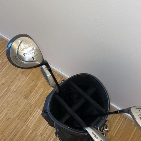 Pynte golftaske med 6 køller.