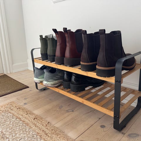 Er du irriteret over, at skoene ligger og flyder overalt i din lejlighed eller i dit hus? Vores enkle skoreol kan let befri dig for din frustration. Dette skoreol har 10 niveauer, som let kan opbevare op til 40 par sko, hvilket vil sørge for, at alle dine elskede sko er ryddeligt velorganiseret på et samlet sted. Den kompakte størrelse gør at den nemt kan passe ind i både stuen, på verandaen, i opbevaringsrummet eller på loftet.Skoreolen er let - den vejer kun 1,6 kg, så den kan nemt flyttes rundt på. Montering er let, intet særligt værktøj kræves. Den er også let at rengøre. Mål: 140 cm x 72 cm x 20 cmAfstand mellem hvert niveau: omtrent 15,5 cmVægt: 1,60 kgKapacitet: Kan holde op til 40 par skoStof: Polyester: 100%