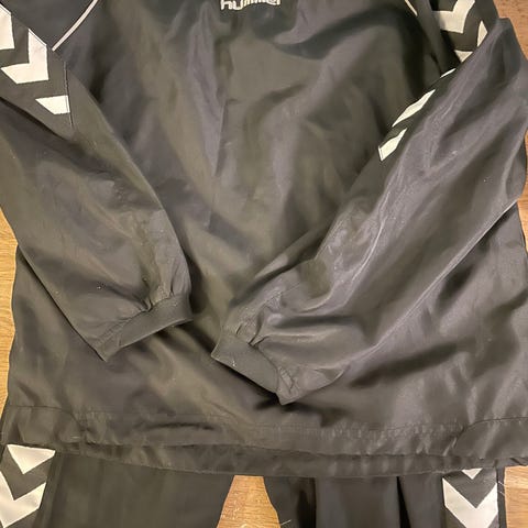 Super-gode grå fleece i størrelse 152 fra Sportmaster, som har været brugt til udendørs sport om vinteren. De fungerer perfekt med en windbreaker udenpå.