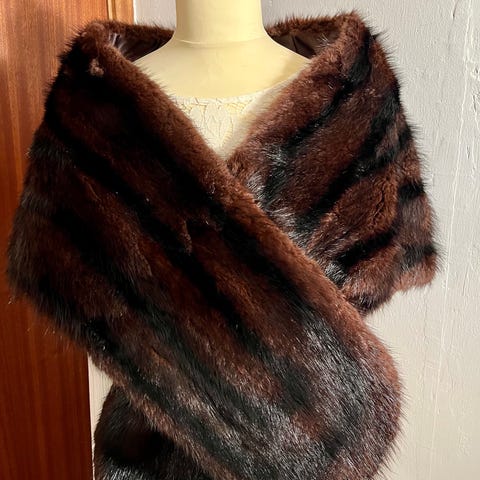 Ægte Mink Cape. Købt i 1968. Brugt en gang til bryllup i 1968. Nypris i ‘68 2500 kr.