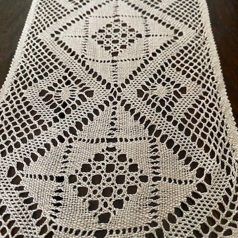 Kniblingsdug, Kniblings løber 200 cm lang, 21 cm bred. - 100kr