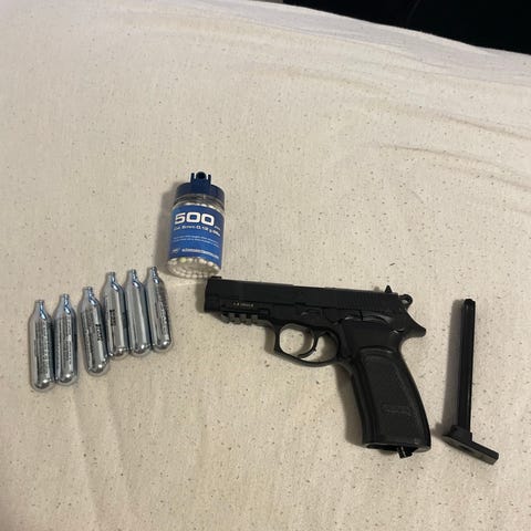 Fin og brugt gas M9 pistol med et magasin.
