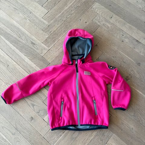 Lækker softshell fra Lego Wear med reflekser, aftagelig hætte og elastik ved håndled. Vandafvisende og åndbar.
