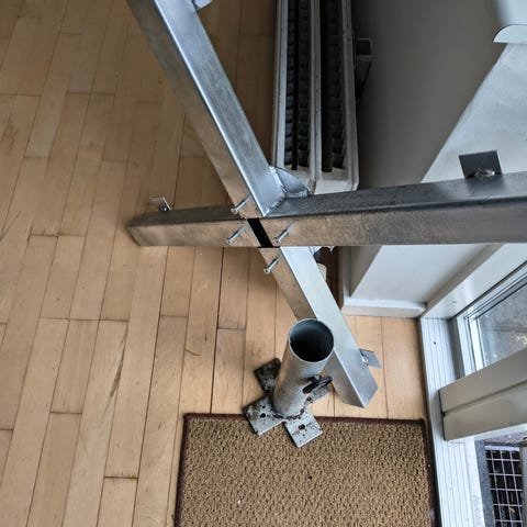 Meget tung og super flot parasolfod i rustfrit stål. Ca 55 cm i diameter.