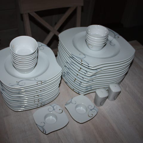 Firkløveren,Christine Holm.Porcelæn Sovseskål med Fad Blå og Hvid,sender gerne.