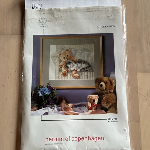 Indeholder beskrivelse og mønster, stof og broderi garn.