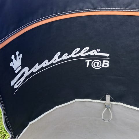 Fortelt der er repareret diverse steder, trænger til omsyning af tag. Uden stænger