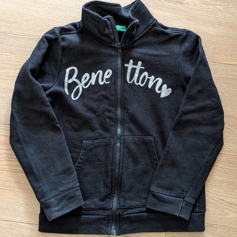 #sweatshirt #sweatjack #hættetrøje #sort #sølv #glimmer #Bennetton #børnetøj #tøj #viborg #pspige