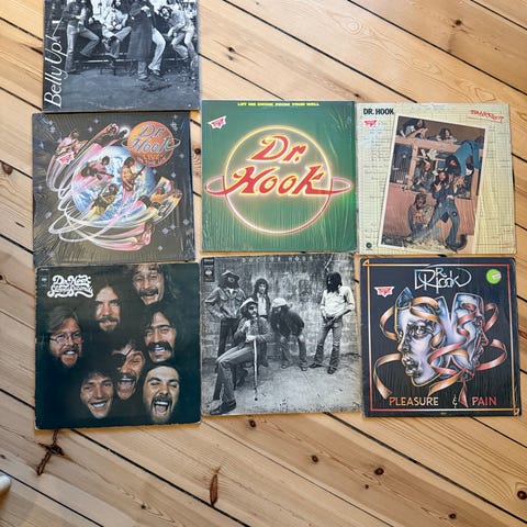 Dr Hook Little Bit More vinylplade med sort cover og pink og grå grafik. Pladen er produceret af Capitol Records og indeholder flere musiknumre. Velegnet til samlere og musiklyttere.
