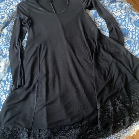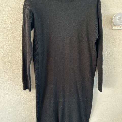 Elegant sort kjole med lange ærmer og en smigrende v-udskæring. Kjolen har en knude detalje foran, der skaber en flot drapering og en slids, der giver et sofistikeret touch.
