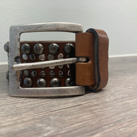 Læderbælte i kalveskind med bæltespænde i metal. Egnet til både mænd og kvinder.