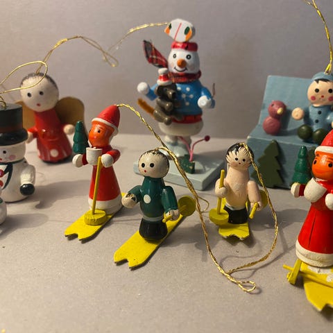 juleklokker i messing, gamle glaskugler og julepynt fra Daells Varehus.