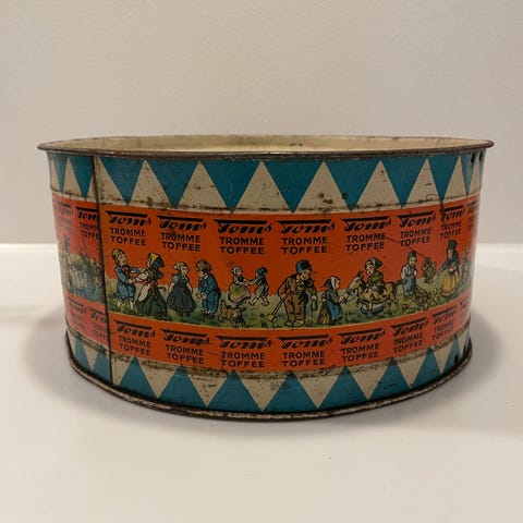 SJOV GAMMEL TOMS REKLAME I GLAS RAMME FOR TOMS FYLDTE BOLCHER NÅR DE ALLERBEDST