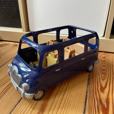 Sylvanian Families legetøjsbil i pink med plads til figurer, egnet til børn. Bilen er lavet af plast og træ, designet til at passe til Sylvanian Families figurer og tilbehør. Kan bruges til rolleleg og samling med andre Sylvanian Families produkter.
