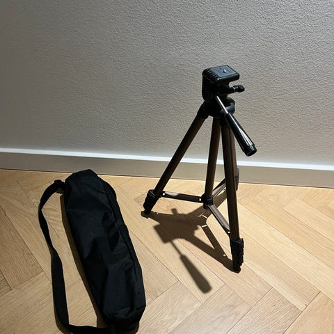 Lille sort mini stativ, praktisk til kamera eller mobil. Nem at folde sammen og tage med. Perfekt til bordoptagelser, rejser eller hobbybrug.