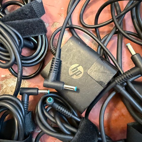 Oplader / lader / strømforsyning / adapter 19,5V, 2,31A 45W Med det store runde strømstik med den lille nål i midten. Der kan medfølge strømledning med 3-benet stikprop eller strømledning med 2-benet stikprop.