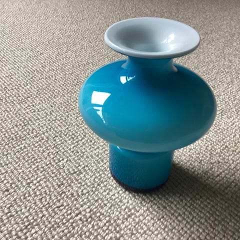 Stor Evergreen dråbevase i hvidt glas fra Holmegaard.