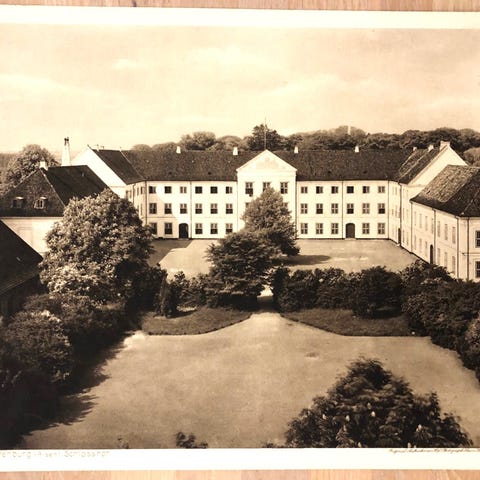 Foto i stort format (30 x 24 cm) fra før genforeningen 1920 på Als. Original optagelse af Flensborg fotografen Heinrich Hinz af Augustenborg Slotskirke. Kirken fungerer som sognekirke. Ideelt foto til at sætte i glas og ramme. Fotoet i god stand.