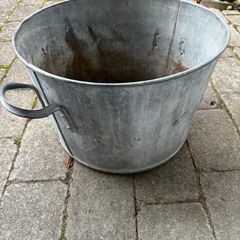 Vintage gammel oval zinkbalje med skøn patina,Afhentes i:,Røde Kors Odense Byggegenbrug (461),Bemærk at mail, chat og beskeder ikke besvares, og varen skal købes på knappen "Gå til varen"