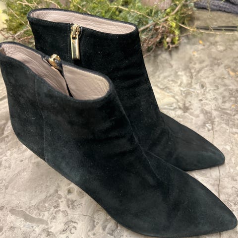 Kun brugt to gange, men hælen er desværre beskadiget. Ellers er de i perfekt stand og alt følger med.