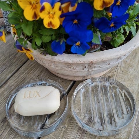 Sæbe og tandbørste beholder, Ges. Gesch, Vintage glasskåle til sæbe og tandbørste/-pasta.