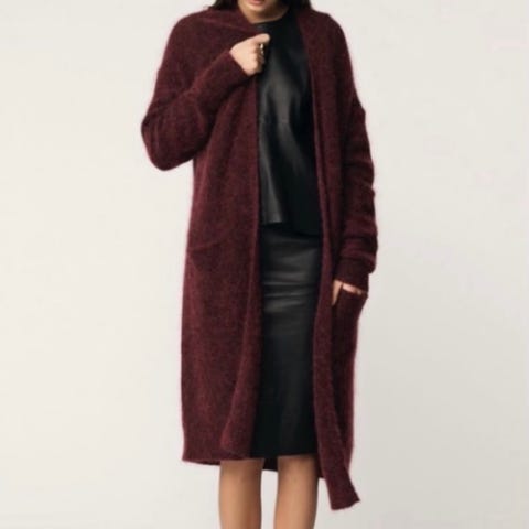 Lækkert oversize strik cardigan fra Malene Birger i farven bourgogne rød str. XS passes af en ( XS-M)