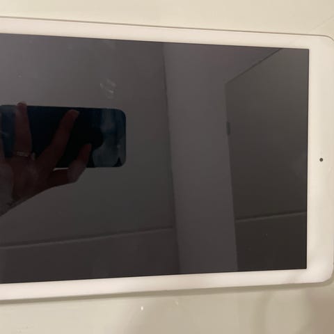 Apple iPad Air tablet with 128 GB. Revne i skærm i øverste venstre hjørne. Er udenfor brugsområde så generer ikke dagligt brug.