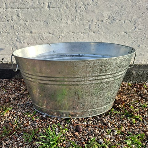 Den ene med huller til dræning, den anden med lidt rust i bund og sider, men ingen gennemtæring.