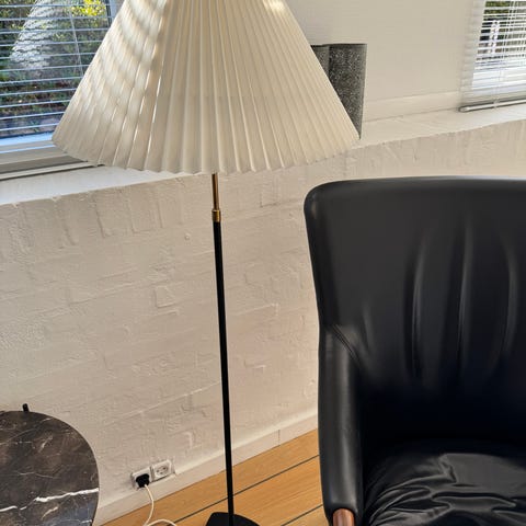 Forskellige stander og bordlamper. Le Klint lampe med patina. Åge Petersen, model 351?Hvid rillet stang og messing fod, koster 250 kr. Bordlampe måler 22 cm. Den koster 75 kr. Bordlampe i sort og messingdetaljer med firkantet marmorfod måler 63 cm i højden. Foden måler ca 15 cm. Den koster 150kr. Rillet messinglampe med firkantet fod. Den koster 150kr. Jeg sender ikke