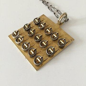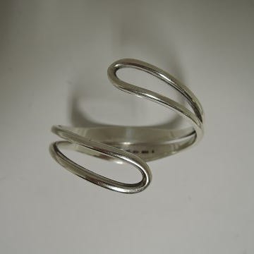 Bent Exner sterling sølv ring prydet med flammende arme og to plexiglas kvadrater