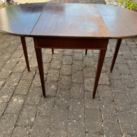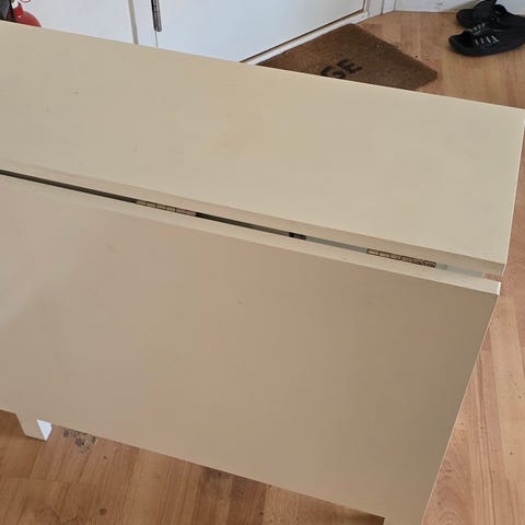 Klapbord. Med udfoldelse måler det 150 cm i bredden.