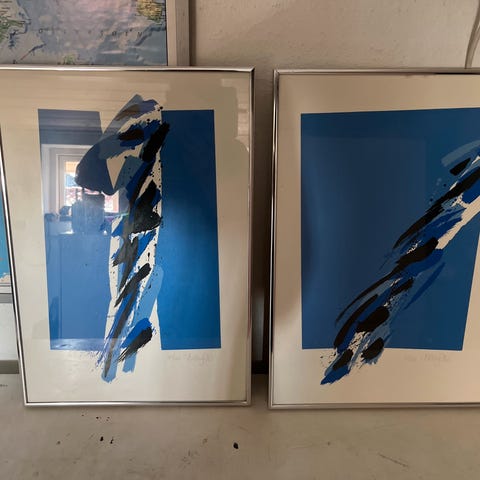 Benny Doré signeret abstrakt litografi nummereret 47 ud af 90. Litografiet har et farverigt motiv med dominerende gule, grønne, lilla og orange nuancer. Indrammet med passepartout og en enkel sølvramme.