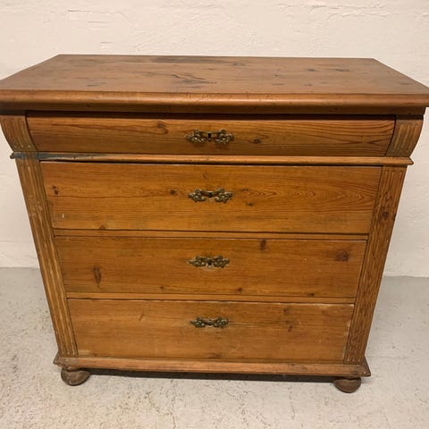 Ældre kommode med 6 store skuffer og 1 smal skuffe.