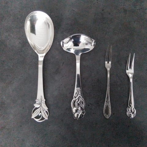Gammelt fransk tagtøj / salatbestik - trænger til at blive pudset.