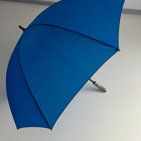 Stormsikker golfparaply med kraftige, dobbelte ribber. Diameter 125 cm. Manuel åbning. NY. Sammenklappet er den ca. 1 mtr. lang. Neopren håndtag. Flot Bordeaux farve. Produceret af Impliva, NL. I enkelte tilfælde kan fragt aftales, men afhentning er bedst.
