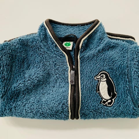 passer til str. 92-98, hyggelig fleecejakke med “dino-sticker” til drenge i fin stand.