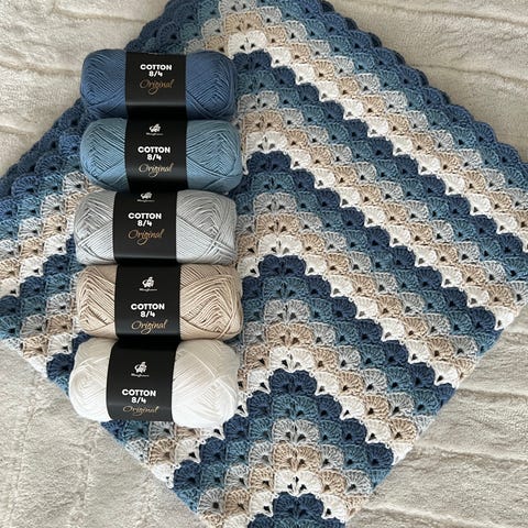 Håndlavet hæklet tæppe i flerfarvet bomuld
