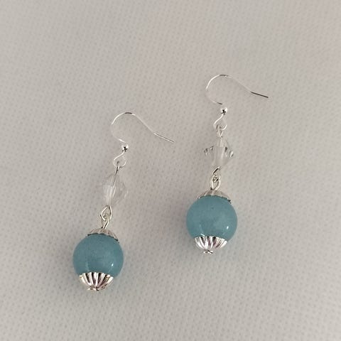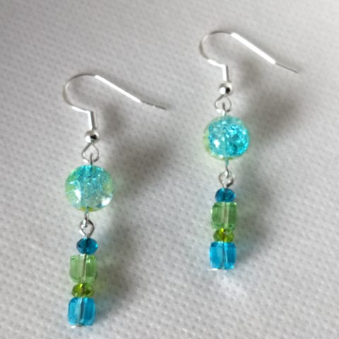 Elegante Sølv øreringe med to smukke turkis glasperler