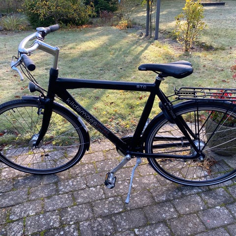 Kildemoes Street bycykel til mænd i sort farve. Cyklen har en robust ramme og er udstyret med lygter samt skærme. Den er designet til bykørsel og har et enkelt gearsystem med navbremse. Cyklen er velegnet til daglig transport i byområder.