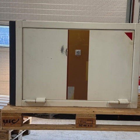 Kassen har en stor lås med drejeknap og flere sikringsmekanismer. Designet til opbevaring og sikring af værdigenstande.
