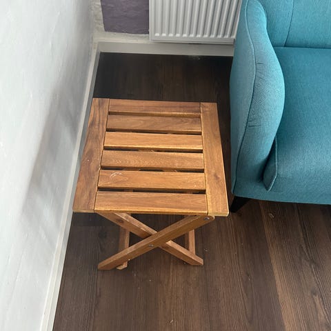 Bord fra IKEA. Det fremstår i en rimelige stand, men alm. brugs tegn fremgår, som små prikker hvor malingen er kradset af. (Se sidste billede) Disse er særligt på nederste hylde af bordet, men det er umiddelbart ikke noget man bemærker, hvis man har ting til at ligge på det.