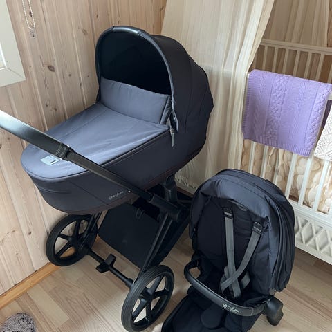 Vi sælger vores fine, røde ‘Cybex Priam’ kombi barne- og klapvogn, som helt sikkert kan give mange gode lure og køreture i fremtiden.