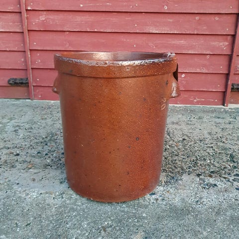 Højde 28 cm - dia incl. hankene 26 cm. Dia ved åbningen 13 cm og ved standfladen 12,5 cm.