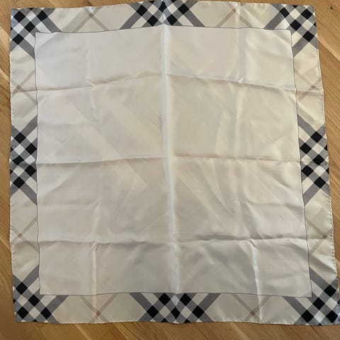 Lyseblåt / gråt silke tørklæde fra Burberry. 40x40 cm. Jeg har ikke kvittering, men det er ægte. Fin stand.