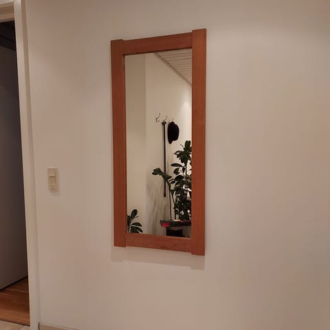 Spejl med ramme i Egetræ - vintage fra 1958-1970