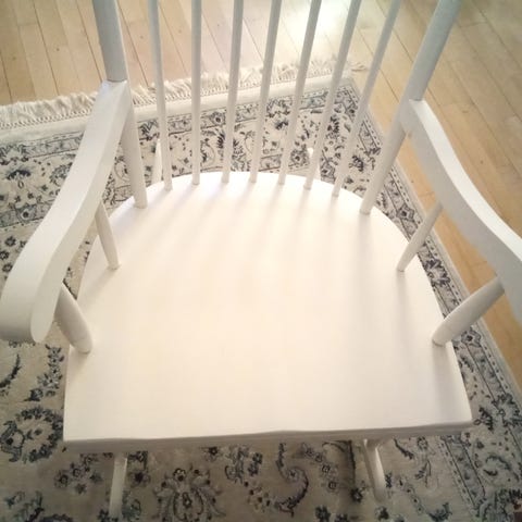 Gyngestol i flet fra Ikea med hvidt lammeskind. Skindet trænger til rens, men fejler ikke noget. Fast pris.